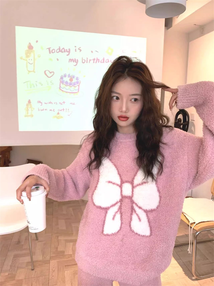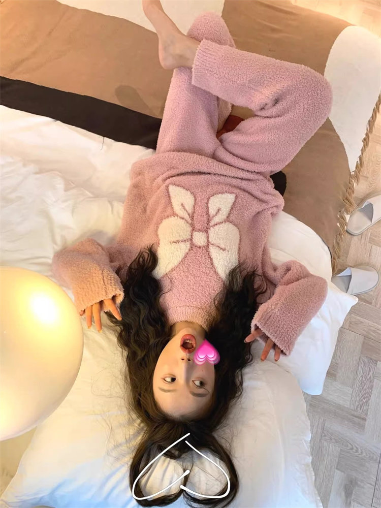 リボンパジャマ レディース 上下セット 着る毛布 暖かい ナイトウェア 可愛い パジャマ 冬 長袖 もこもこ 秋冬 あったか ゆったり フェミニン 女の子 大きいサイズ かわいい ID122